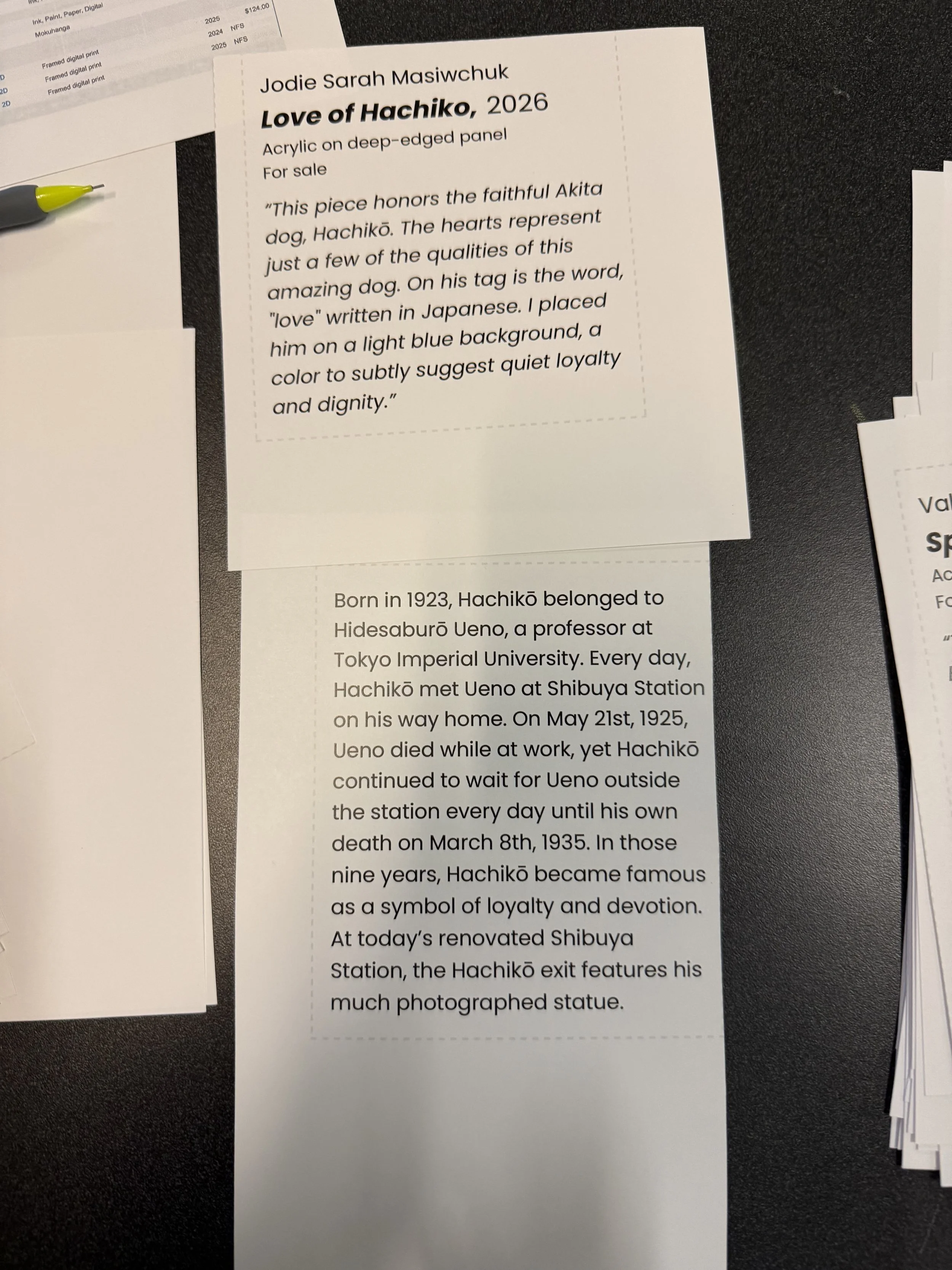 My painting, "Love Of Hachiko" being installed at the Seattle Center for the 51st Annual Seattle Cherry Blossom and Japanese Cultural Festival.